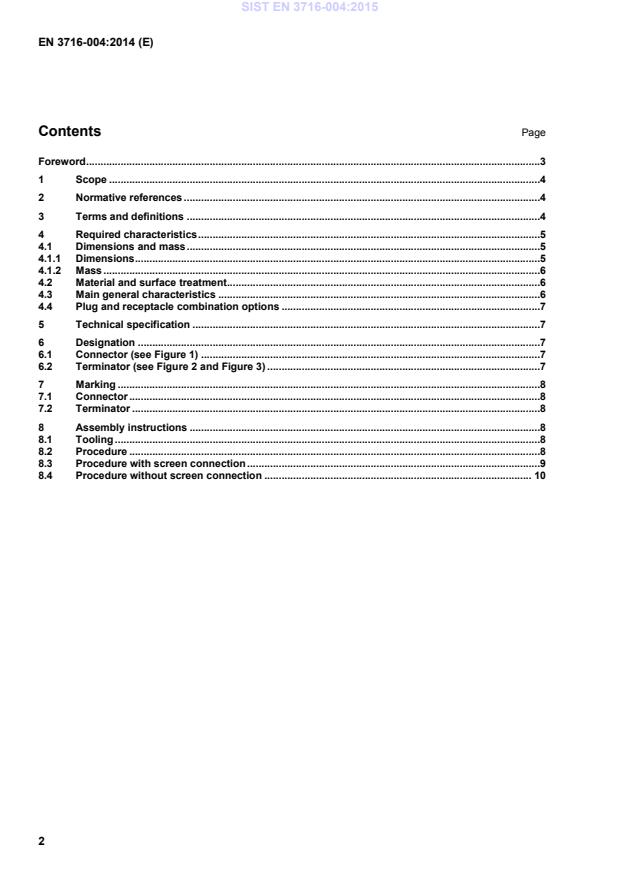 Ta evropski standard določa zahteve in navodila za sestavo za spajkalne vtiče, s pleteno povezavo ali brez, opremljene z moškim ali ženskim kontaktom, ki se uporabljajo v skladu s standardom EN 3716-002 za kable, ki so skladni s standardom EN 3375-003, EN 3375-004 ali EN 3375-005, ter tudi priključke.