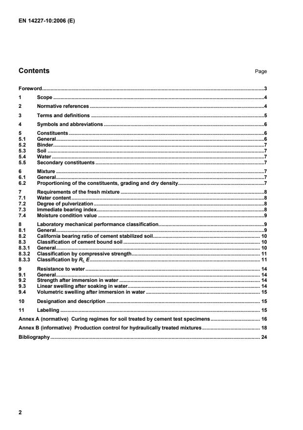 EN 14227-10:2006 is a standard published by the European Committee for Standardization (CEN). Its full title is "Hydraulically bound mixtures - Specifications - Part 10: Soil treated by cement". This standard covers: This European Standard specifies soil treated by cement for the pavement layers of roads, airfields and other trafficked areas and specifies the requirements for its constituents, composition and laboratory performance classification. It provides for the use of aggregates with grading curves, which are not constrained by the limits defined in EN 14227-1 for cement bound granular mixtures. This European Standard does not specify requirements for strength prior to trafficking or frost resistance, which might be covered by requirements at the place of use. Production control recommendations are included in the informative Annex B.