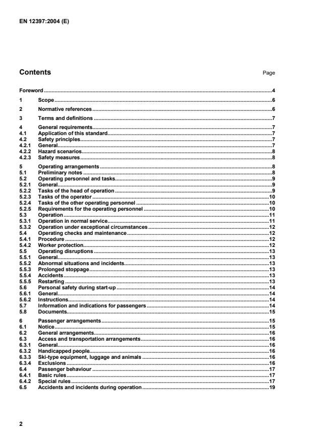 EN 12397:2004 is a standard published by the European Committee for Standardization (CEN). Its full title is "Safety requirements for cableway installations designed to carry persons - Operation". This standard covers: This European Standard specifies the safety requirements applicable to the operation for installations for passenger transportation by rope. Its requirements are to be met by taking into account the various types installations systems and their environment. This standard applies to the operation of an installation and to the passenger transport conditions.