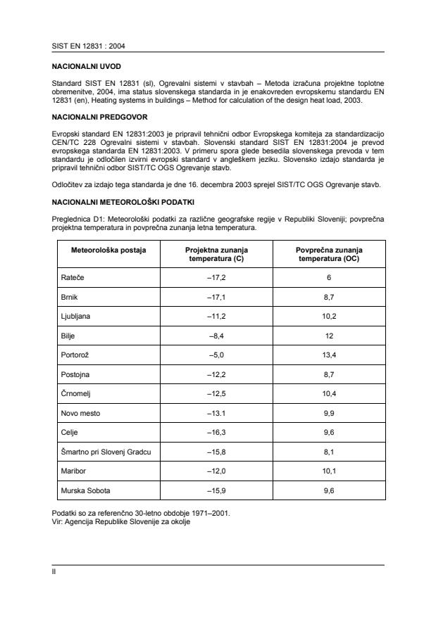 - po celotnem ogrevalnem sistemu za dimenzioniranje kurilne naprave. Ta standard vsebuje tudi poenostavljen računski postopek. Vrednostni parametri in dejavniki za izračun toplotne obremenitve morajo biti določeni v nacionalnem dodatku k temu standardu. V dodatku D so našteti vsi dejavniki, ki so lahko določeni na nacionalni ravni, navedene so tudi standardne vrednosti za primere, za katere nacionalne vrednosti niso na voljo.