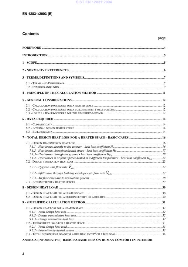 Ta standard določa postopek izračuna za določanje ogrevanja, ki je potrebna pri standardnih pogojih za zagotavljanje, da je dosežena potrebna projektna notranja temperatura zraka. Ta standard opisuje postopek za izračun projektne toplotne obremenitve: