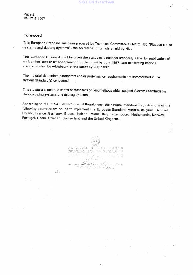 EN 1716 complements other CEN standards covering plastics piping systems and PE materials, including those addressing raw material properties, dimensional requirements, jointing methods and system testing. For complete compliance and system design, consult related PE piping standards and product-specific normative references.