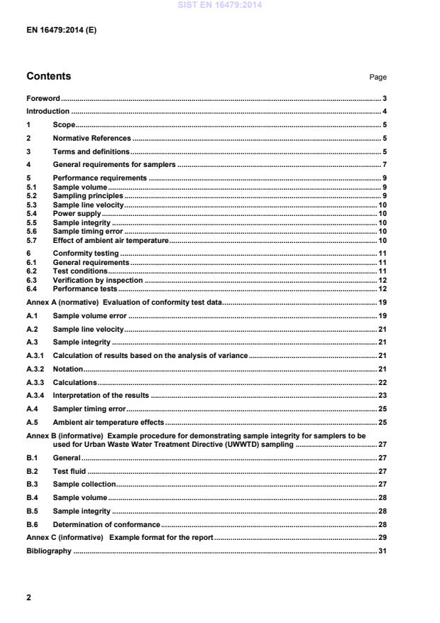 Example procedure for demonstrating sample integrity for samplers to be used for Urban Waste Water Treatment Directive (UWWTD) sampling . 27 B.1 General . 27 B.2 Test fluid . 27 B.3 Sample collection . 27 B.4 Sample volume . 28 B.5 Sample integrity . 28 B.6 Determination of conformance . 28 Annex C (informative)