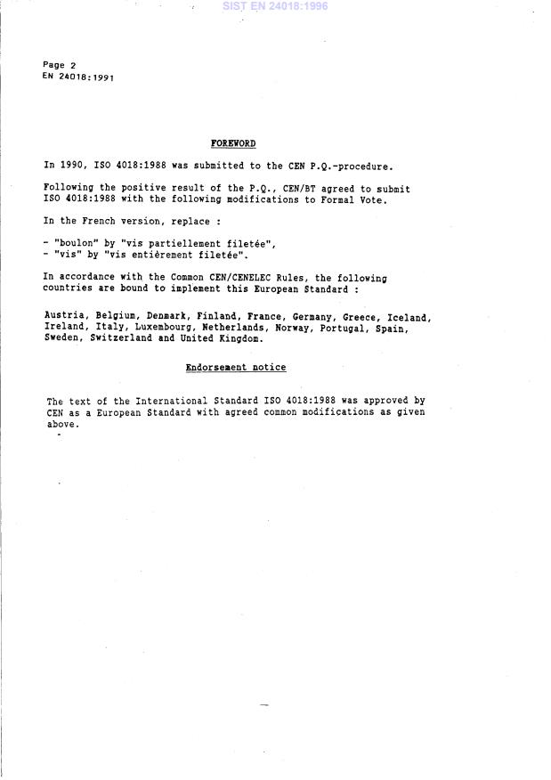 2003-01.Slovenski inštitut za standardizacijo. Razmnoževanje celote ali delov tega standarda ni dovoljeno.Vijaki s šestrobo glavo z navojem do glave - Razred izdelave CSechskantschrauben mit Gewinde bis Kopf - Produktklasse C (ISO 4018:1988)Vis a tete hexagonale - Grade C (ISO 4018:1988)Hexagon head screws - Product grade C (ISO 4018:1988)21.060.10Sorniki, vijaki, stebelni vijakiBolts, screws, studsIC