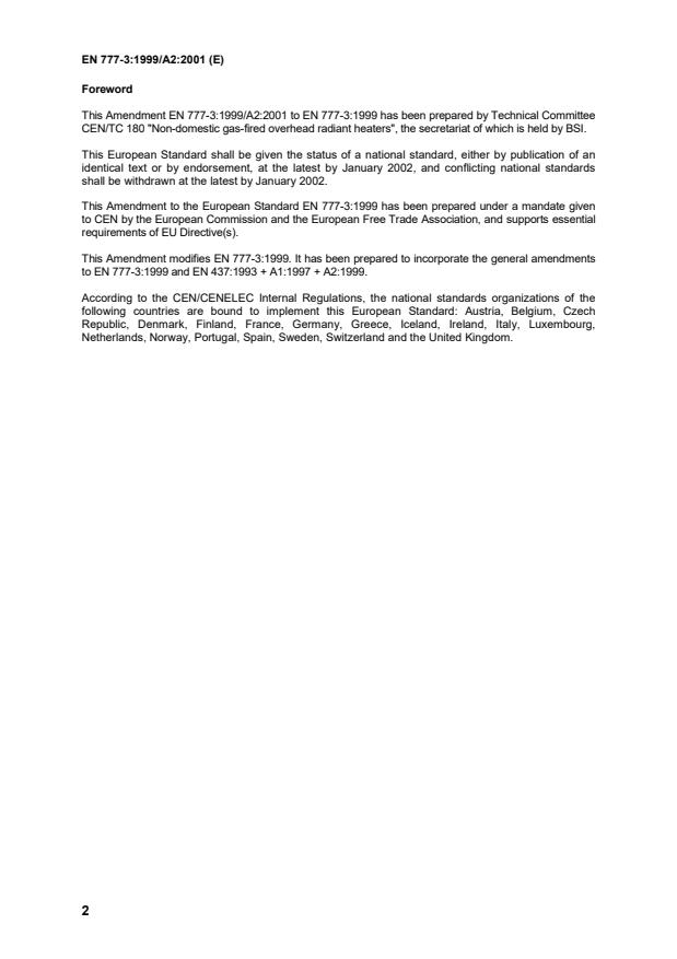 This amendment A2 modifies the European Standard EN 777-3:1999; it was approved by CEN on 9 June 2001.