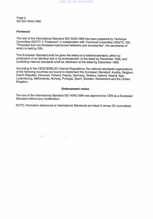 Ta slovenski standard je istoveten z: EN ISO 4042:1999