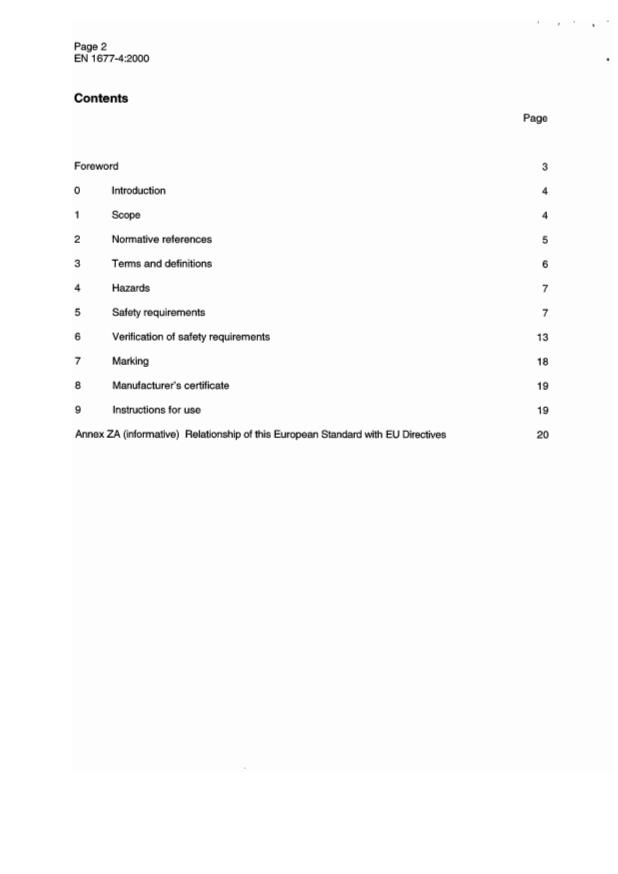 EN 1677-4:2000 is associated with the following European legislation: EU Directives/Regulations: 98/37/EC; Standardization Mandates: M/BC/CEN/91/1. When a standard is cited in the Official Journal of the European Union, products manufactured in conformity with it benefit from a presumption of conformity with the essential requirements of the corresponding EU directive or regulation.