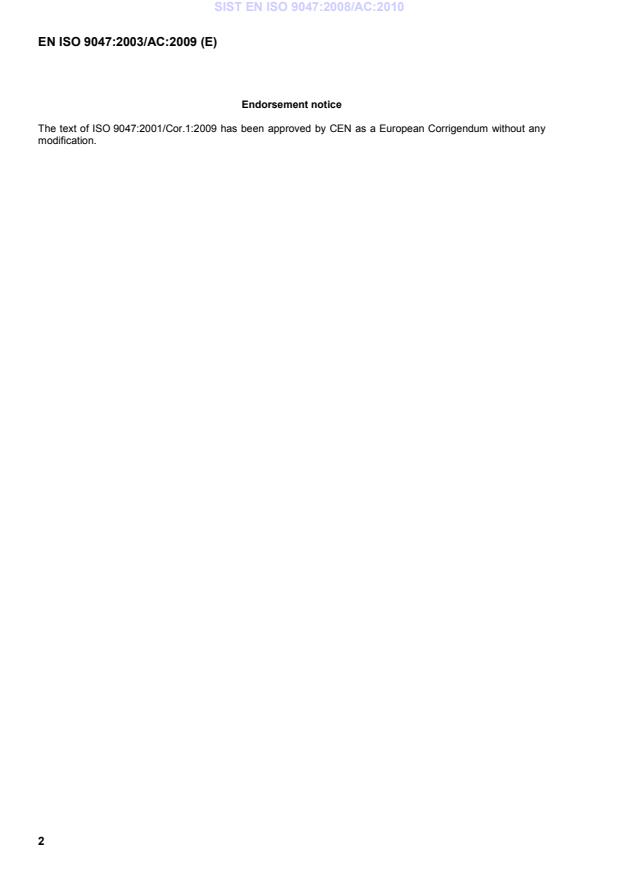 TC - EN implementation of ISO Corrigendum ISO 9047:2001/Cor 1:2009.