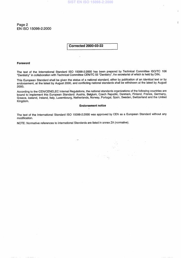 EN ISO 15098-2:2000 is classified under the following ICS (International Classification for Standards) categories: 11.060.20 - Dental equipment. The ICS classification helps identify the subject area and facilitates finding related standards.