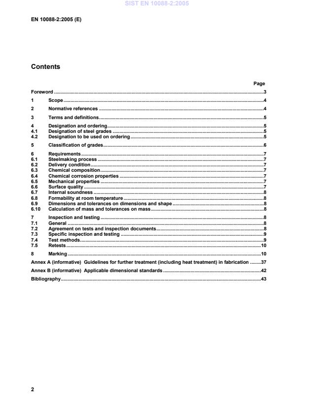 EN 10088-2:2005 is a standard published by the European Committee for Standardization (CEN). Its full title is "Stainless steels - Part 2: Technical delivery conditions for sheet/plate and strip of corrosion resisting steels for general purposes". This standard covers: 1.1 This part of EN 10088 specifies the technical delivery conditions for hot or cold rolled sheet/plate and strip of standard grades and special grades of corrosion resisting stainless steels for general purposes. NOTE General purposes include the use of stainless steels in contact with foodstuffs. 1.2 The general technical delivery conditions specified in EN 10021 apply in addition to the specifications of this European Standard, unless otherwise specified in this European Standard. 1.3 This European Standard does not apply to components manufactured by further processing of the product forms listed in 1.1 with quality characteristics altered as a result of such further processing.