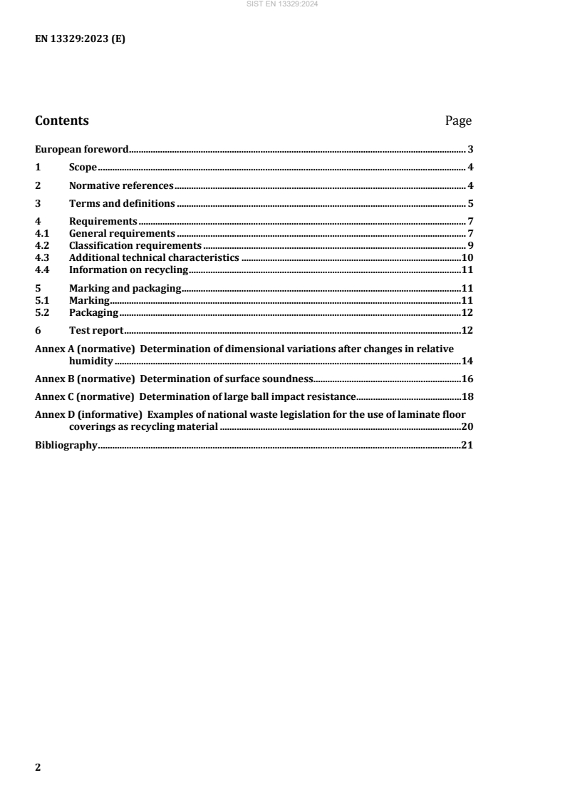 - Annexes and references - Normative annexes for humidity-related dimensional change, surface soundness, large ball impact, and guidance on recycling and waste legislation.