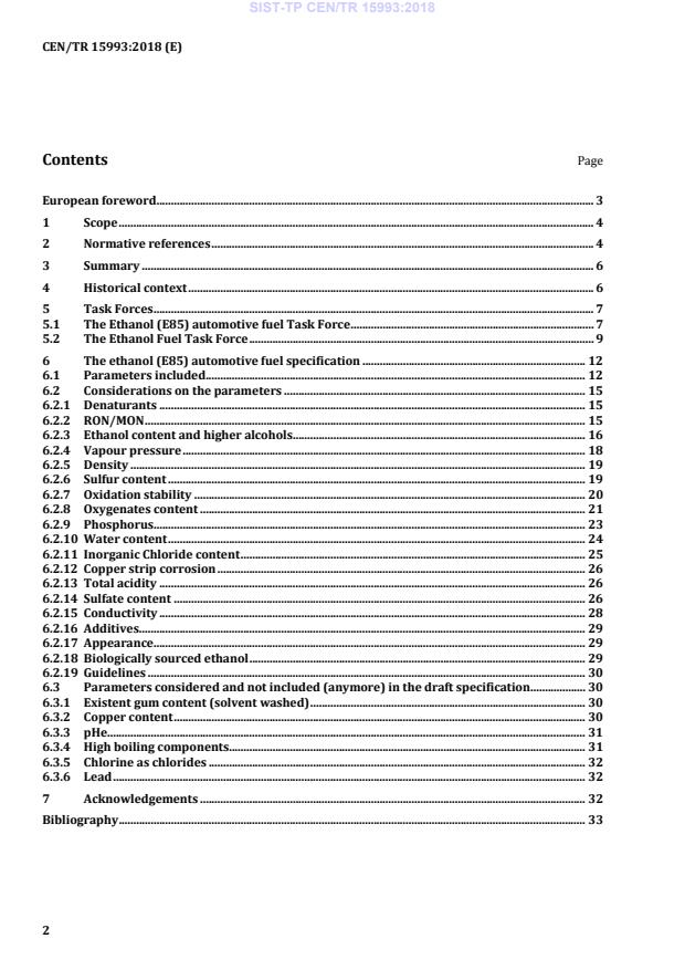 CEN/TR 15993:2018 is a technical report published by the European Committee for Standardization (CEN). Its full title is "Automotive fuels - Ethanol (E85) automotive fuel - Background to the parameters required and their respective limits and determination". This standard covers: This Technical Report explains the requirements and test methods for marketed and delivered ethanol (E85) automotive fuel according to EN 15293. It provides background information on the final text of the draft European standard and gives guidance and explanations to the producers, blenders, marketers and users of ethanol (E85) automotive fuel. It is applicable to ethanol (E85) for use in spark ignition engine vehicles designed to run on ethanol (E85). Ethanol (E85) is a mixture of nominally 85 % ethanol and 15 % petrol, but it also includes the possibility of having different 'seasonal grades' containing 50 % or more ethanol. NOTE 1 This document is directly related to prEN 15293:2017 and will be updated if further revisions to the standard take place. NOTE 2 For the purposes of this document, the terms "% (m/m)" and "% (V/V)" are used to represent the mass fraction, µ, and the volume fraction, φ, respectively.
