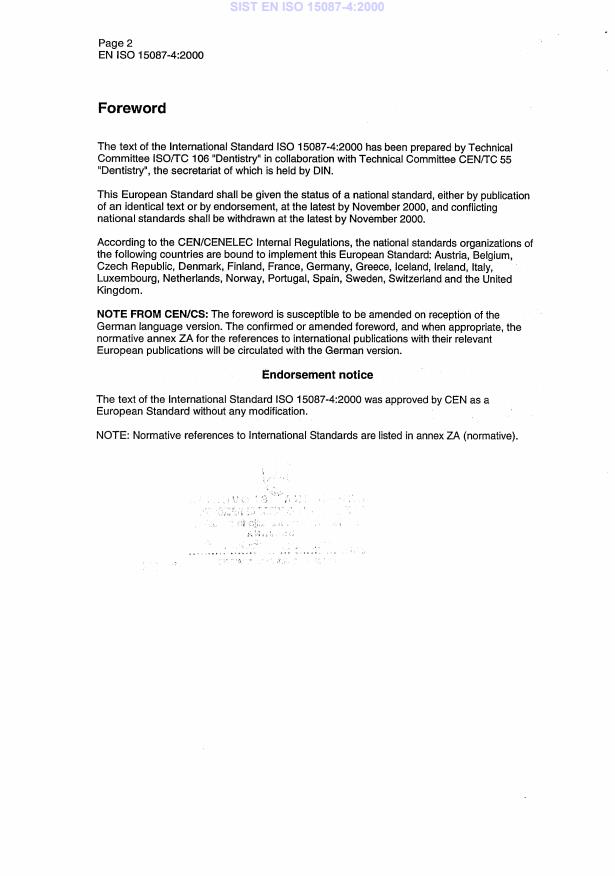 International Standard ISO 15087-4 was prepared by Technical Committee ISO/TC 106, Dentistry, Subcommittee