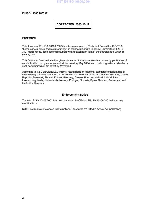 Pipework - Fittings for corrugated metal hoses (ISO 10806:2003)