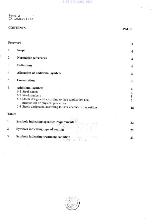 CR 10260:1998 is a standardization document published by the European Committee for Standardization (CEN). Its full title is "Designation systems for steel - Additional symbols". This standard covers: Designation systems for steel - Additional symbols