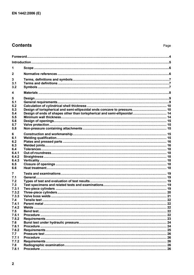 EN 1442:2006 is a standard published by the European Committee for Standardization (CEN). Its full title is "LPG equipment and accessories - Transportable refillable welded steel cylinders for LPG - Design and construction". This standard covers: This European Standard specifies the minimum requirements for the design, construction and testing during manufacture of transportable refillable welded steel Liquefied Petroleum Gas (LPG) cylinders, of water capacity from 0,5 l up to and including 150 l, exposed to ambient temperatures. This European Standard applies only to cylinders having a circular cross-section.