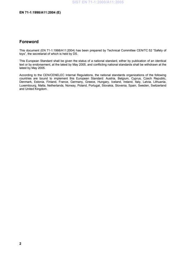 This amendment A11 modifies the European Standard EN 71-1:1998; it was approved by CEN on 21 October 2004.