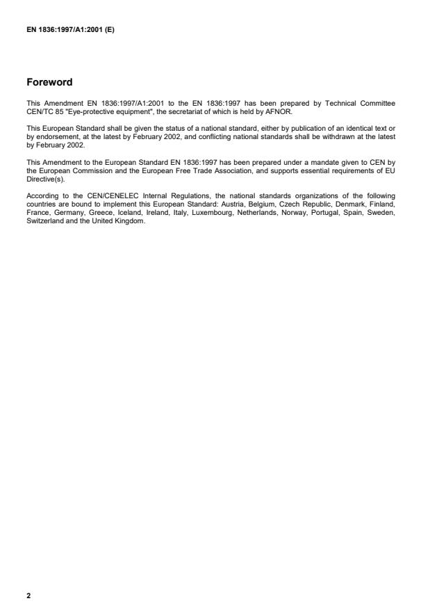 This Amendment EN 1836:1997/A1:2001 to the EN 1836:1997 has been prepared by Technical Committee