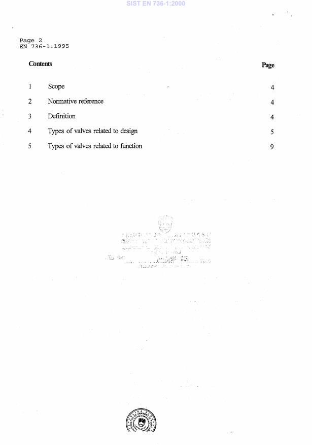 EN 736-1:1995 is a standard published by the European Committee for Standardization (CEN). Its full title is "Valves - Terminology - Part 1: Definition of types of valves". This standard covers: This standard gives the denominations of valves. It has the purpose to provide a uniform and systematic terminology for all types of valves. By reasons of classification of terms clause 4 defines terms related to basic design characteristics and clause 5 defines terms related to functional characteristicsof valves.