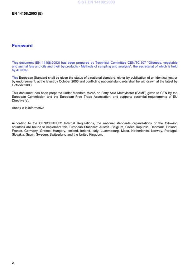 EN 14108:2003 is classified under the following ICS (International Classification for Standards) categories: 67.200.10 - Animal and vegetable fats and oils. The ICS classification helps identify the subject area and facilitates finding related standards.