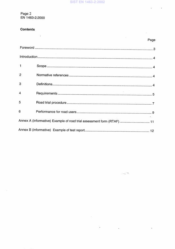 EN 1463-2:2000 is a standard published by the European Committee for Standardization (CEN). Its full title is "Road marking materials - Retroreflecting road studs - Part 2: Road test performance specifications". This standard covers: This European Standard describes a test method for carrying out road trials on retroreflecting road studs for use in both permanent and temporary applications. Specifications are given for test sites and for application patterns and a recommendation is given for the presentation of the results in the form of a test report.