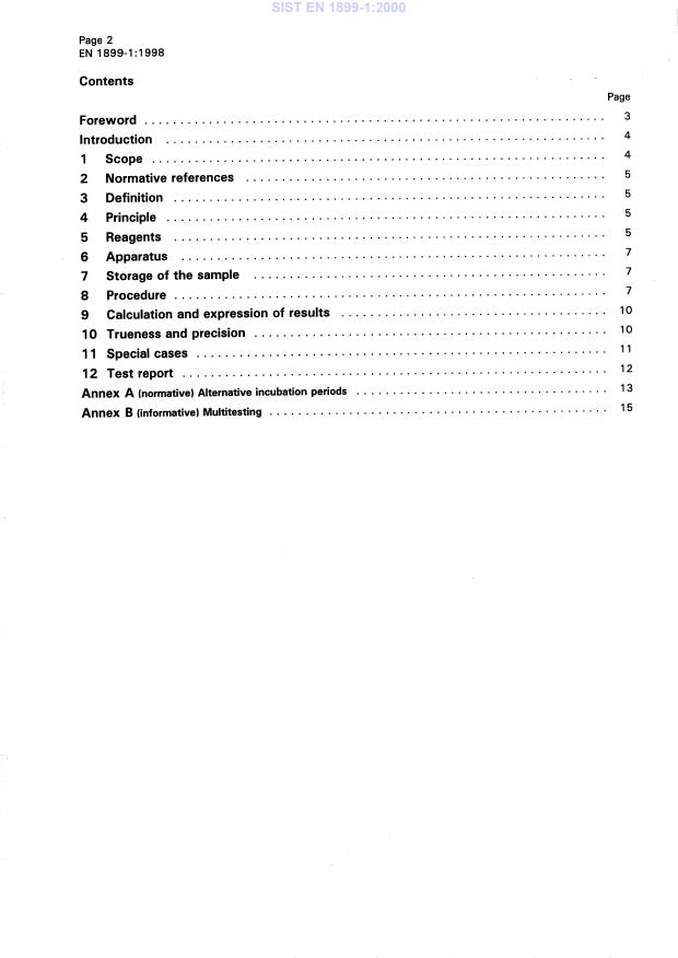 Diese Europäische Norm legt die Bestimmung des biochemischen Sauerstoffbedarfs in Wässern durch Verdünnung und Impfen mit Nitrifikationshemmung fest. Diese Norm ist für alle Wässer geeignet, deren biochemischer Sauerstoffbedarf größer oder gleich 3 mg/l Sauerstoff ist, aber 6000 mg/l Sauerstoff nicht überschreitet. Für einen biochemischen Sauerstoffbedarf von mehr als 6000 mg/l Sauerstoff ist das Verfahren zwar noch anwendbar, aber durch die notwendigen Verdünnungen können die Fehler die Qualität des Testverfahrens beeinflussen und die Ergebnisse sind mit Vorsicht zu interpretieren.