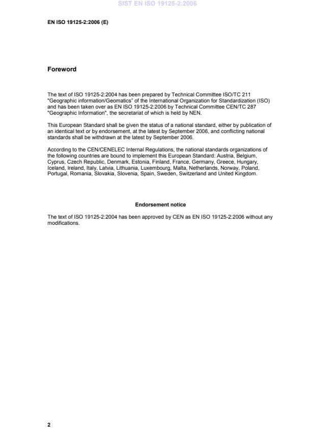 The text of ISO 19125-2:2004 has been approved by CEN as EN ISO 19125-2:2006 without any