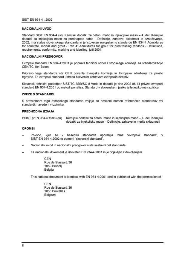 Ta slovenski standard je istoveten z: EN 934-4:2001