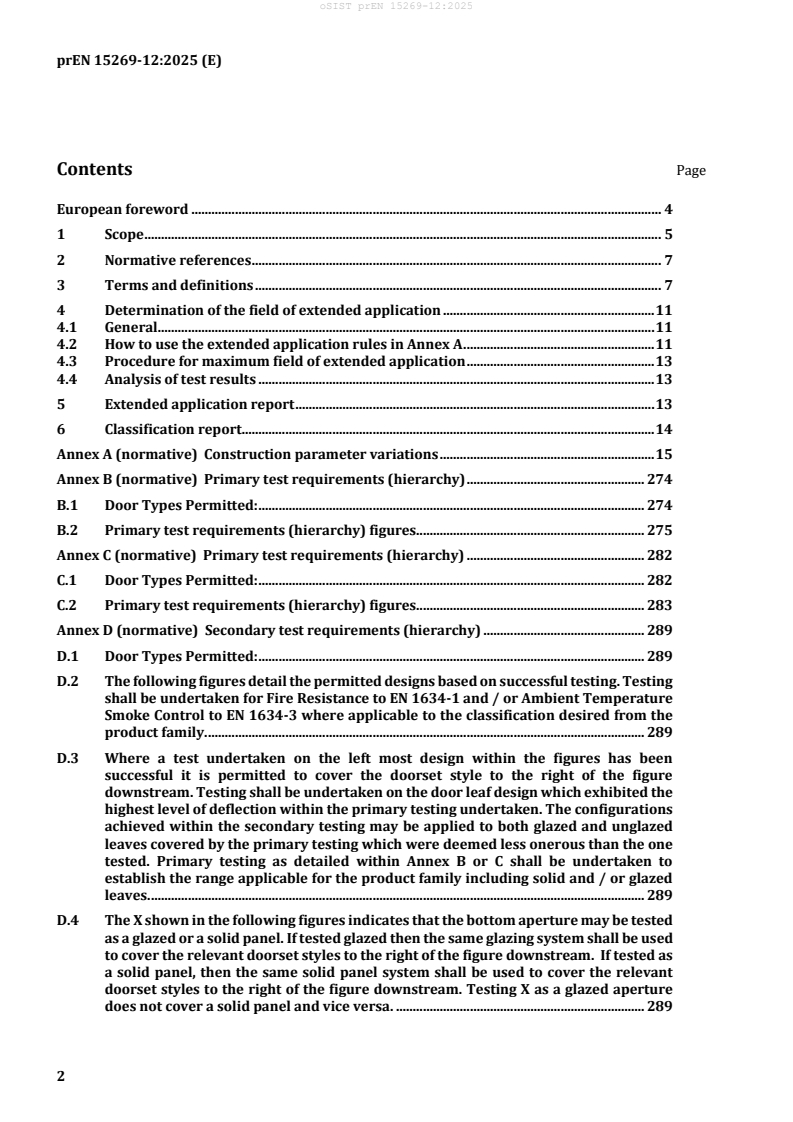 - Primary and secondary test hierarchies: Normative Annexes B, C and D define primary and secondary test requirements and permitted door designs downstream from an approved test.