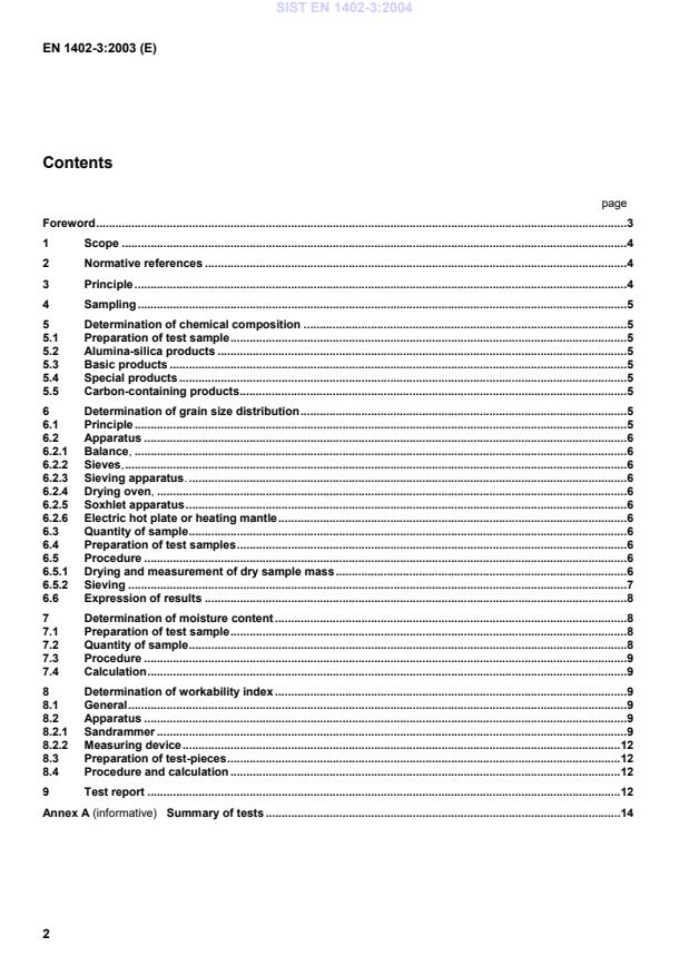 Summary of tests.14SIST EN 1402-3:2004
