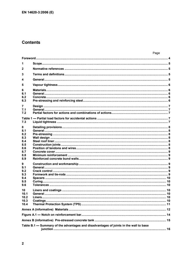 1 Scope This European Standard specifies general requirements for materials, design and construction of the concrete components of the refrigerated liquefied gas storage tanks. This European Standard deals with the design and manufacture of site built, vertical, cylindrical, flat-bottomed steel tanks for the storage of refrigerated, liquefied gases with operating temperatures between 0 °C and –165 °C. 2 Normative references The following referenced documents are indispensable for the application of this European Standard. For dated references, only the edition cited applies. For undated references, the latest edition of the referenced document (including any amendments) applies. EN 206-1, Concrete — Part 1: Specification, performance, production and conformity EN 1992-1-1:2004, Eurocode 2: Design of concrete structures — Part 1-1: General rules and rules for buildings EN 1992-1-2:2004, Eurocode 2: Design of concrete structures — Part 1-2: General rules — Structural fire design EN 14620-1:2006, Design and manufacture of site built, vertical, cylindrical, flat-bottomed steel tanks for the storage of refrigerated, liquefied gases with operating temperatures between 0 °C and −165°C — Part 1: General EN 14620-2, Design and manufacture of site built, vertical, cylindrical, flat-bottomed steel tanks for the storage of refrigerated, liquefied gases with operating temperatures between 0 °C and –165 °C — Part 2: Metallic components 3 Terms and definitions For the purposes of this European Standard, the terms and definitions given in EN 14620-1:2006 and the following apply. 3.1 low temperature temperature lower than –20 °C 4 General For material selection and design of normal reinforced concrete and/or pre-stressed concrete structures, reference is made to EN 1992-1-1.