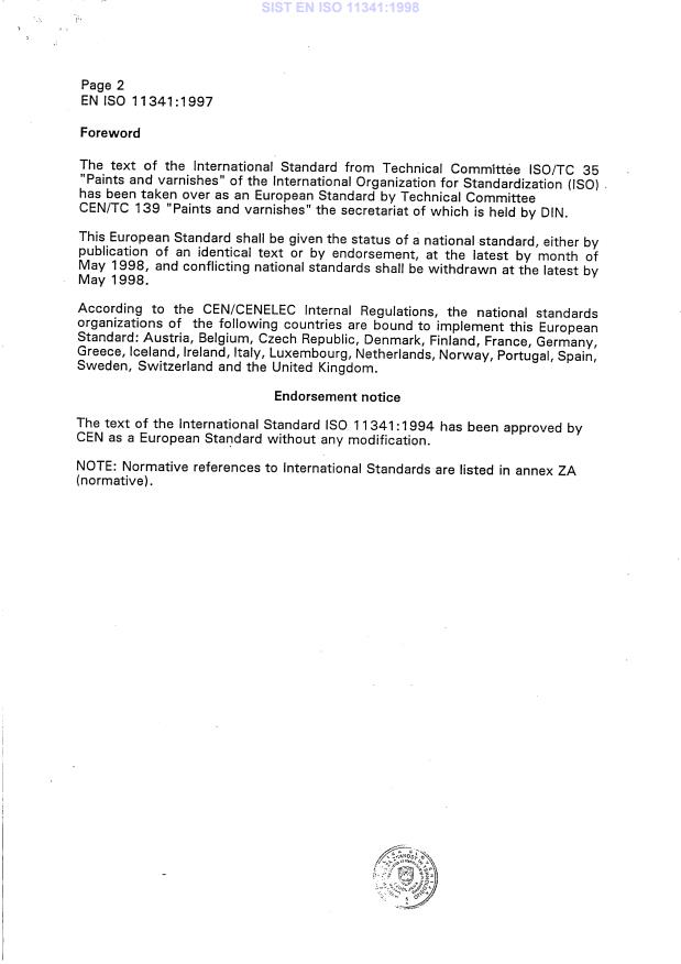 Ta slovenski standard je istoveten z: EN ISO 11341:1997