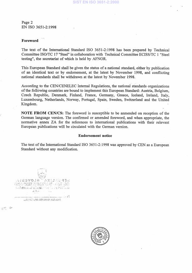 Comparison of commonlyavailable national standards and this partof ISO 3651 .9SIST EN ISO 3651-2:2000