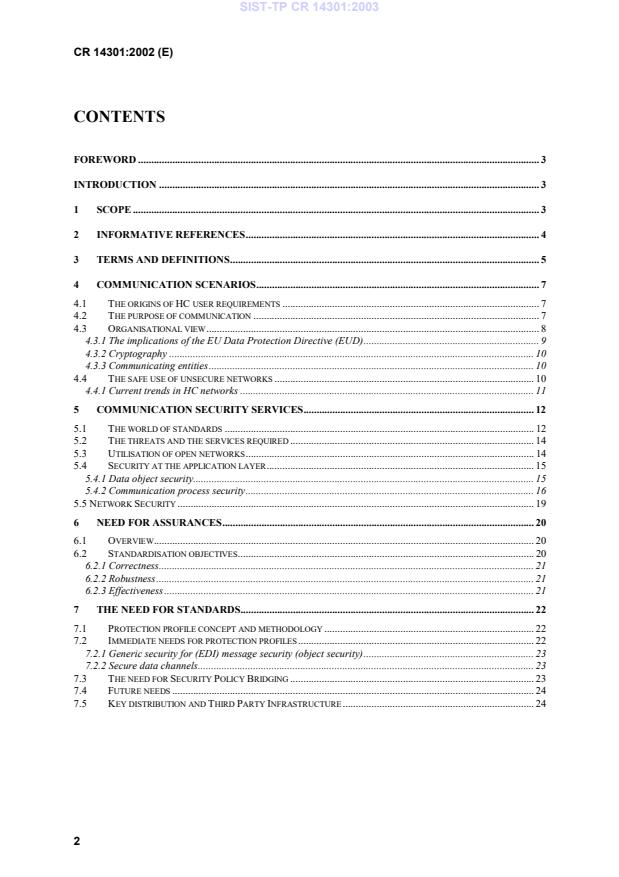 CR 14301:2002 is a technical report published by the European Committee for Standardization (CEN). Its full title is "Health informatics - Framework for security protection of healthcare communication". This standard covers: This CEN Report aims at promoting a better understanding of the security issues in relation to health care (HC) IT-communication, to point at already existing applicable International and European standards. The notion of a framework used in this report does not embody functional security models or specifications that constitute a basis for implementation of systems. This framework comprises identification and discussion of relevant issues, indicating other related standardization work in this area, and indicating the need for specific healthcare standards in the field.