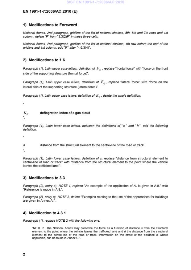 EN 1991-1-7:2006/AC:2010 is a corrigendum published by the European Committee for Standardization (CEN). Its full title is "Eurocode 1 - Actions on structures - Part 1-7: General actions - Accidental actions". This standard covers: TC - Modification in the E reference version of the mother standard regardig the Foreword, Clauses 1, 3 and 4 and Annexes A, B, C and D. 2013: Originator of XML version: first setup pilot of CCMC in 2012
