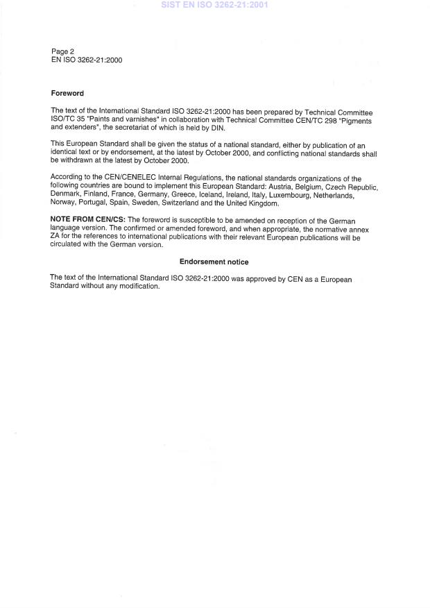 International Standard ISO 3262-21 was prepared by Technical Committee ISO/TC 35, Paints and varnishes,