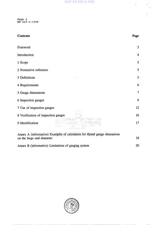 EN 629-2:1996 is a standard published by the European Committee for Standardization (CEN). Its full title is "Transportable gas cylinders - 25E taper thread for connection of valves to gas cylinders - Part 2: Gauge inspection". This standard covers: This European Standard specifies types, dimensions and principles of use of gauges, to be used in conjunction with the taper thread specified in EN 629-1. Annex A provides examples of calculations for thread gauge dimensions on the large end diameter. Annex B draws attention to the limitations of the gauging system specified.
