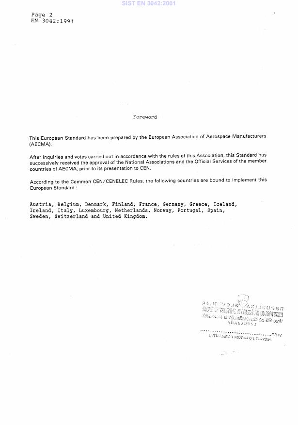 EN 3042:1991 is a standard published by the European Committee for Standardization (CEN). Its full title is "Aerospace series - Quality assurance - EN aerospace products - Qualification procedure". This standard covers: This standard prescribes the qualification procedure for EN aerospace products. It is applicable in conjunction with EN 2000 whenever it is referenced in the EN standards.