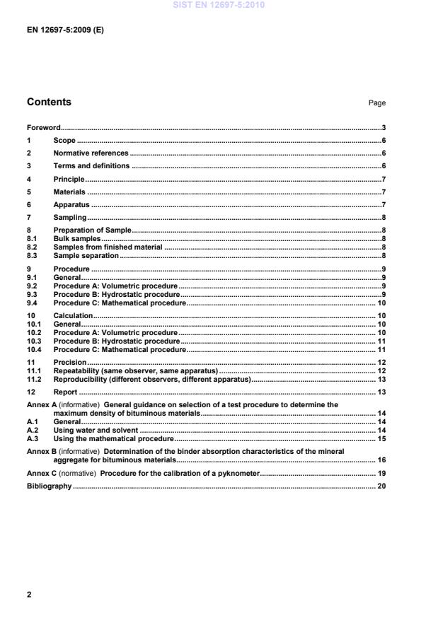 General guidance on selection of a test procedure to determine the maximum density of bituminous materials . 14A.1 General . 14A.2 Using water and solvent . 14A.3 Using the mathematical procedure . 15Annex B (informative)