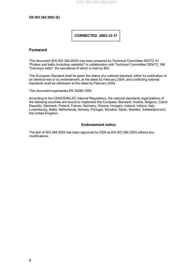 EN ISO 284:2003 is classified under the following ICS (International Classification for Standards) categories: 53.040.20 - Components for conveyors. The ICS classification helps identify the subject area and facilitates finding related standards.
