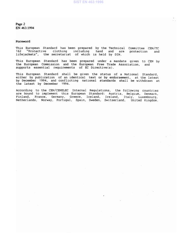 EN 463:1994 is classified under the following ICS (International Classification for Standards) categories: 13.340.10 - Protective clothing. The ICS classification helps identify the subject area and facilitates finding related standards.