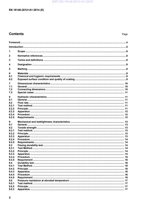 EN 16146:2012+A1:2014 is a standard published by the European Committee for Standardization (CEN). Its full title is "Sanitary tapware - Extractable shower hoses for sanitary tapware for supply systems type 1 and type 2 - General technical specification". This standard covers: This European Standard applies to hoses for extractable outlets of any material intended for equipping sanitary tapware for sinks and basins. Such hoses will only be connected downstream of the obturator of the tapware. The tapware will comply with EN 200, EN 817, EN 1111, EN 1286 or EN 1287 (see [1], [2], [3], [5] and [6]). Hoses intended to connect sanitary tapware to the water supplies are not covered by this standard. This European Standard specifies: - the dimensional, mechanical and hydraulic characteristics with which the hose for extractable outlets shall comply; - the procedures for testing these characteristics. Details of pressures and temperatures are given in Table 1. (...)