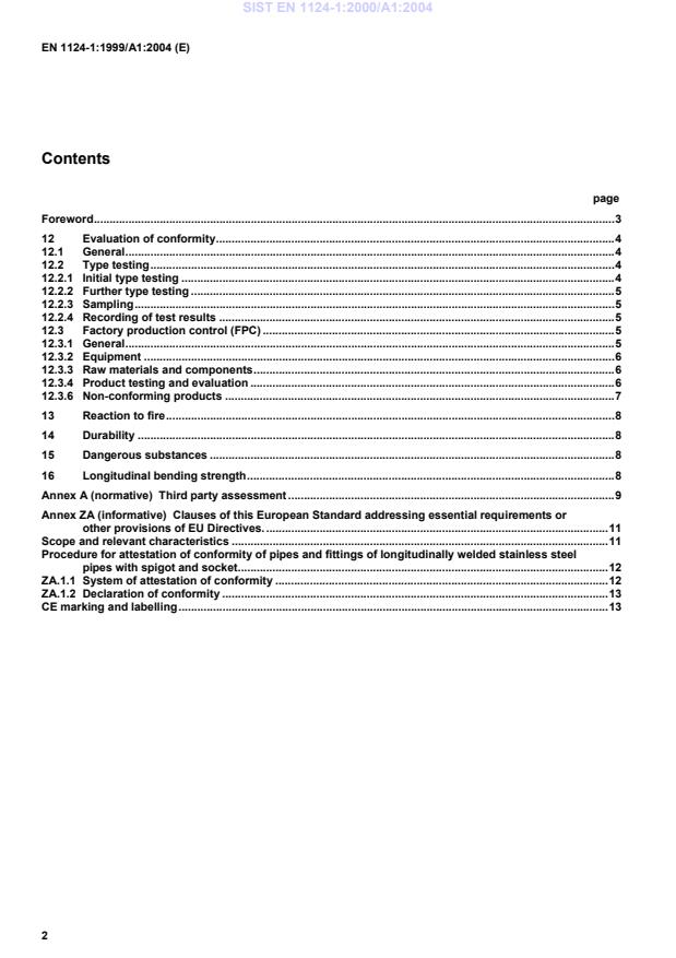 EN 1124-1:1999/A1:2004 is the CEN European standard covering longitudinally welded stainless steel pipes and fittings with spigot and socket for waste water systems. Part 1 specifies the requirements, testing and quality control needed to demonstrate conformity for products used in external sewage and wastewater applications. This amendment (A1, 2004) updates conformity assessment clauses and adds requirements on reaction to fire, durability, dangerous substances and longitudinal bending strength.