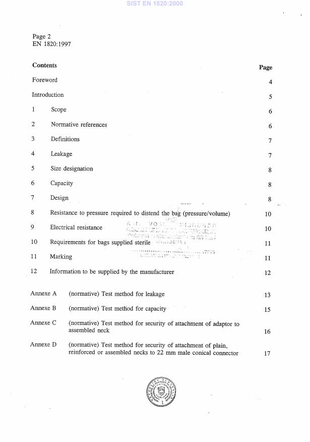 EN 1820:1997 is a standard published by the European Committee for Standardization (CEN). Its full title is "Anaesthetic reservoir bags". This standard covers: This European Standard specifies requirements for reservoir bags for use with anaesthetic apparatus or lung ventilator breathing systems. It includes requirements for the design of the neck, size designation, distension and, where relevant, for electrical resistance. Special-purpose bags, for example bellows and self-expanding bags, are excluded from the scope of this standard.