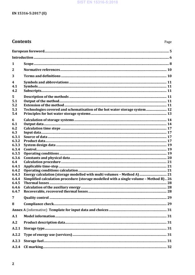 Template for input data and choices . 31 A.1 Model information . 31 A.2 Product description data . 31 A.2.1 Storage type . 31 A.2.2 Type of energy use (services) . 31 A.2.3 Storage fuel . 31 A.2.4 CE marking. 32 SIST EN 15316-5:2018