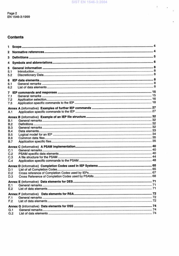 Dieser Teil von EN 1546 liefert die notwendigen Informationen über die zu speichernden und außutauschenden Datenelemente, damit IEP-Systeme, die dieser Norm entsprechen, zu einer Zusammenarbeit fähig sind. Die Transaktionstypen, die IEPs nach EN 1546-1 (Begriffe und Strukturen) und EN 1546-2 (Sicherheitsarchitektur) umfassen, werden im normativen Teil dieses Teils von EN 1546 behandelt.