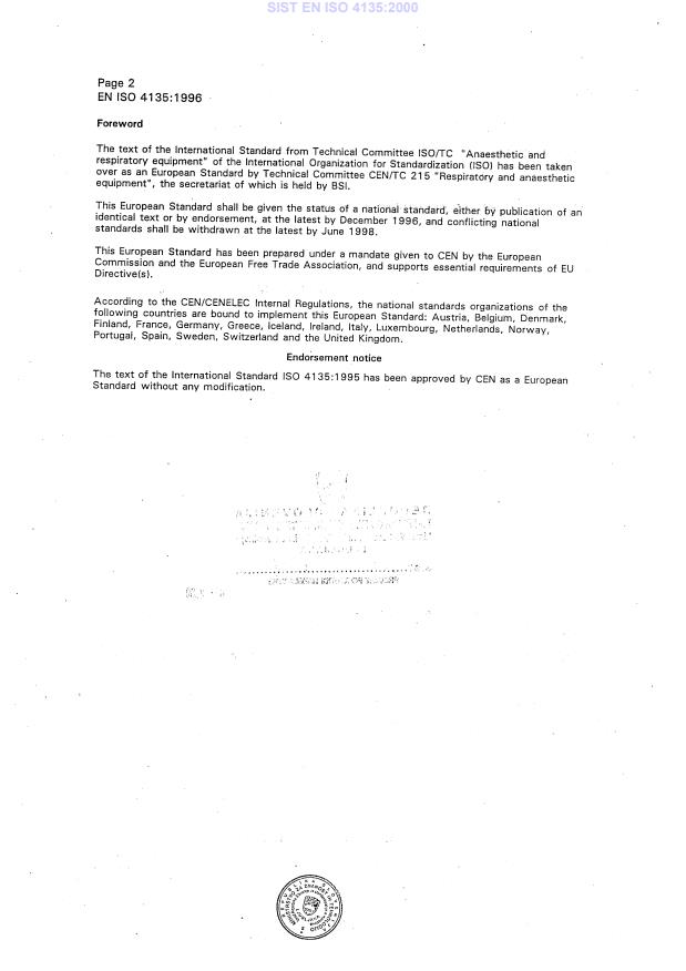 EN ISO 4135:1996 has the following relationships with other standards: It is inter standard links to EN ISO 4135:2001, EN 61821:2003, EN 60601-2-12:2006, EN ISO 10651-4:2009, EN 794-3:1998+A2:2009. Understanding these relationships helps ensure you are using the most current and applicable version of the standard.