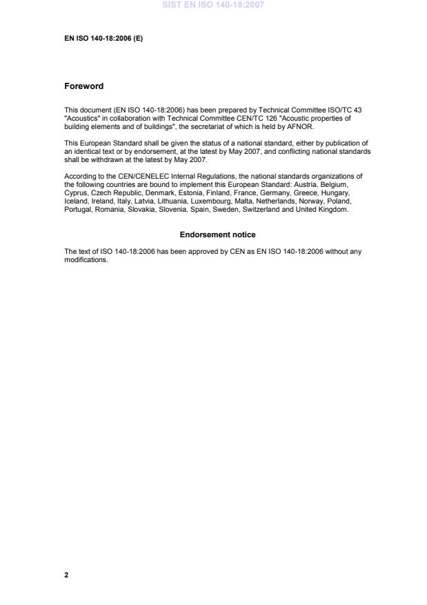 This document (EN ISO 140-18:2006) has been prepared by Technical Committee ISO/TC 43