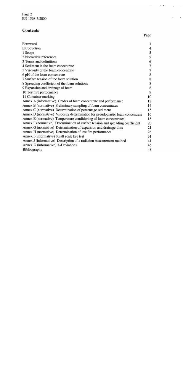 EN 1568-3:2000 is a standard published by the European Committee for Standardization (CEN). Its full title is "Fire extinguishing media - Foam concentrates - Part 3: Specification for low expansion foam concentrates for surface application to water-immiscible liquids". This standard covers: This European Standard specifies requirements for chemical and physical properties, and minimum performance requirements of low expansion foams suitable for surface application to water-immiscible liquids. Requirements are also given for marking. NOTE: Some concentrates complying with this Part of EN 1568 can also comply with other Parts and therefore may also be suitable for application as medium and/or high expansion foams.