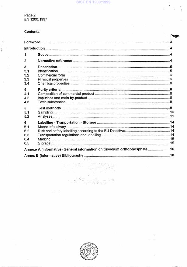 EN 1200:1997 is a standard published by the European Committee for Standardization (CEN). Its full title is "Chemicals used for treatment of water intended for human consumption - Trisodium orthophosphate". This standard covers: This European Standard describes the characteristics and specifies the requirements and the corresponding test methods for trisodium orthophosphate used for treatment of water intended for human consumption. It gives information on its use in water treatment.